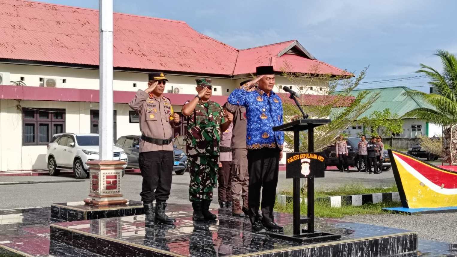 Selain aparar TNI/Polri, upacara yang berlangsung di Lapangan Polrse Aru tersebut juga melibat personel Pos SAR Aru serta perwakilan dari Satpol PP, Dinas Perhubungan, dan Dinas Kesehatan, Kamis (12/3).