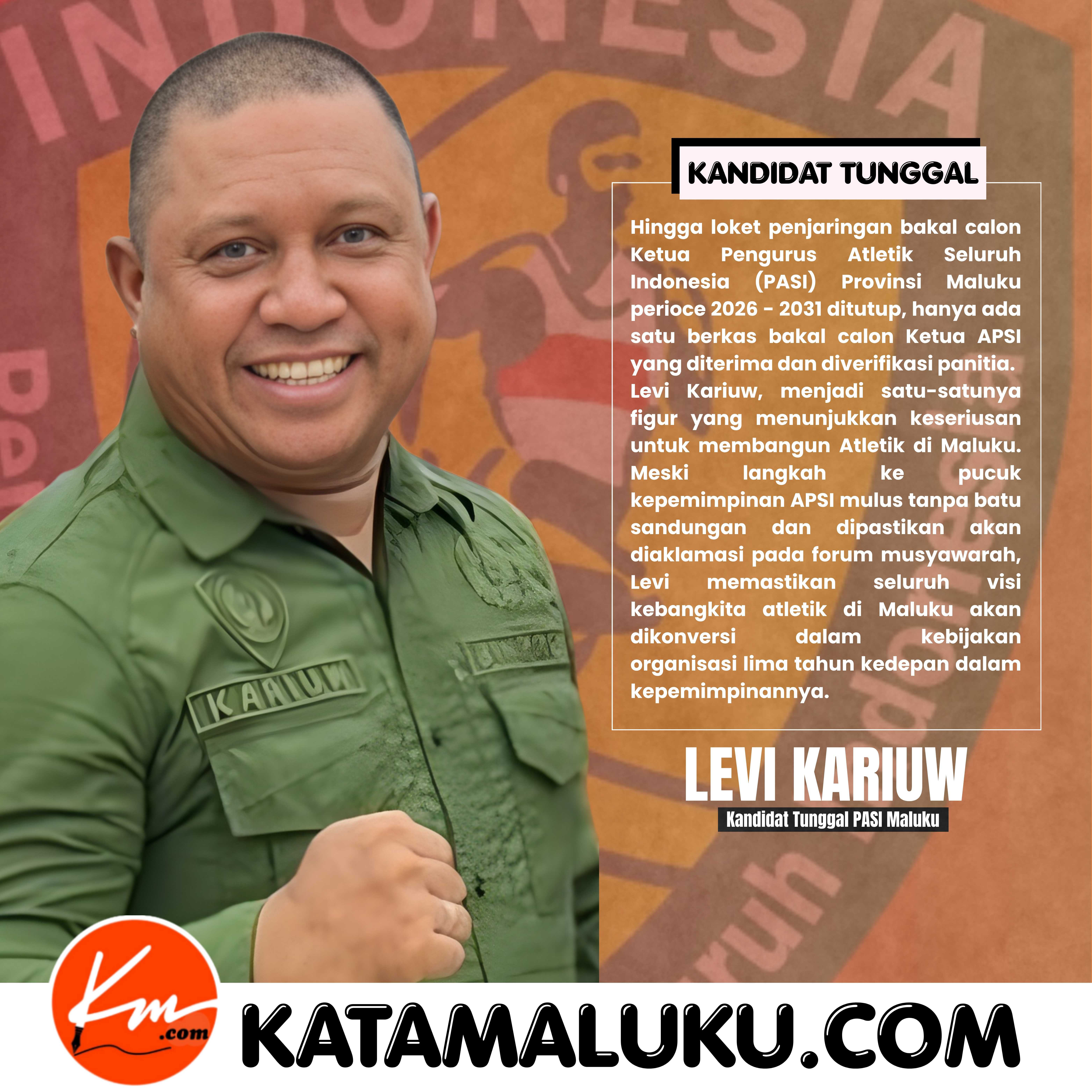 Levinus Kariuw menjadi sayi-satunya kandidat bakal calon ketua PASI Maluku. Hal itu terkonfirmasi lewat Tim Penjaringan dan Penyaringan (TPP) Ketua PASI 2026-2031.